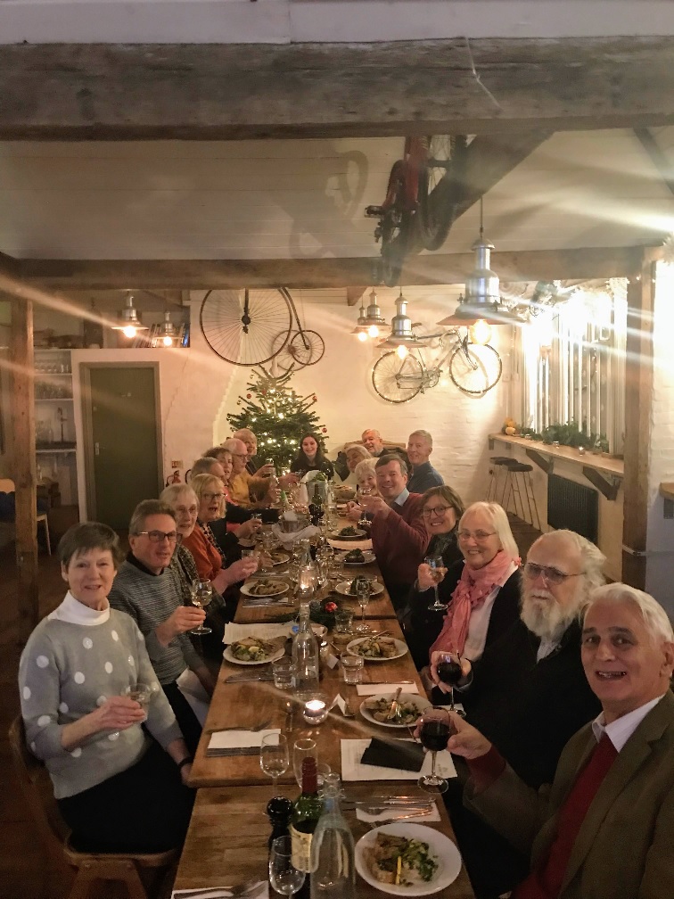 Our Christmas Dinner at The Handle Bar Cafe on Monday 5 December 2021 was great fun. We had sole use of the lovely upstairs room, which was beautifully decorated, warm and inviting. The staff were delightful and the food, was delicious. We were sad that Frances & John Stobbs could not join us, as they were self-isolating, but a takeaway was easily arranged.